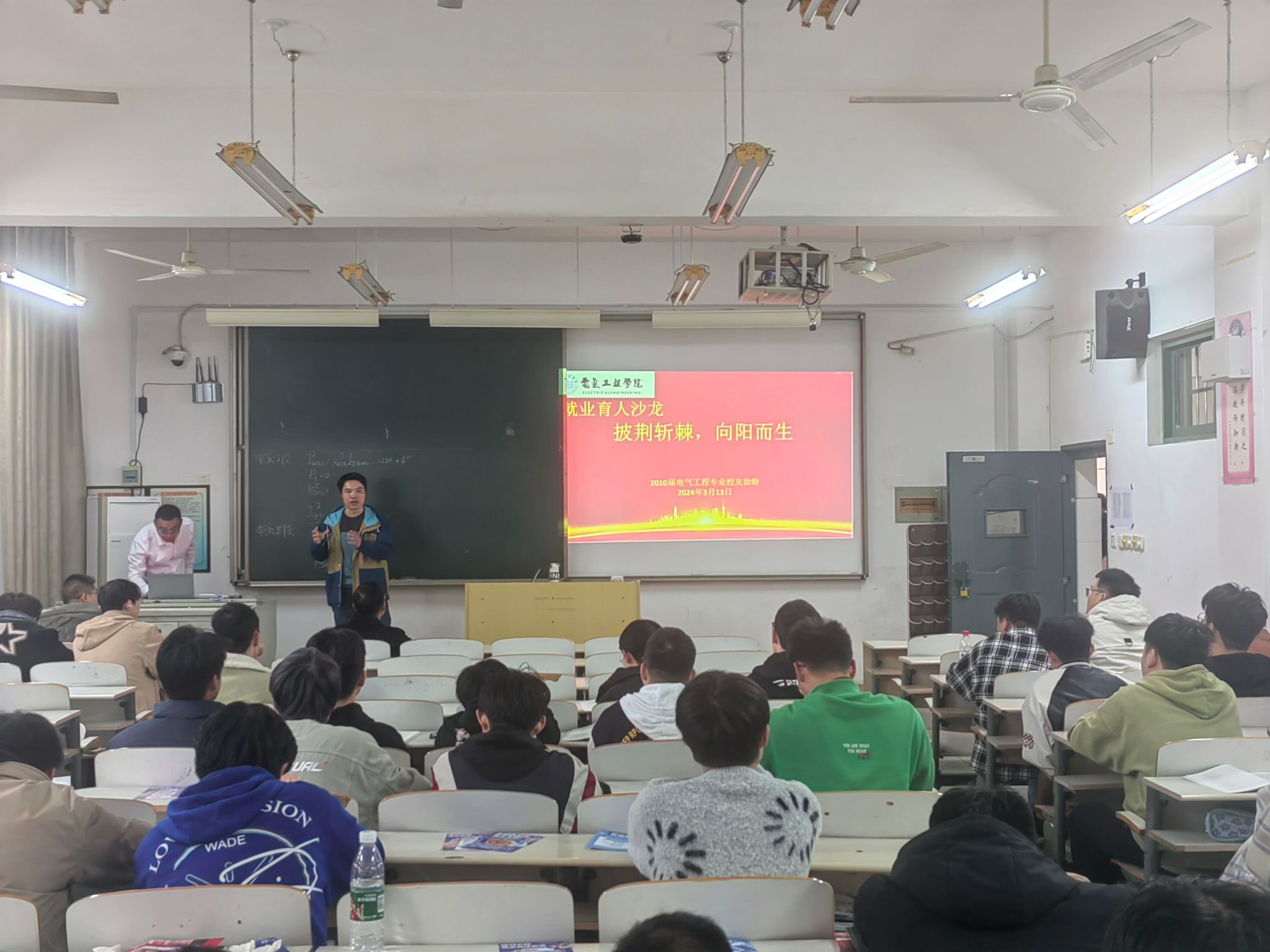 为加强学院就业工作,引导毕业生树立正确的就业观,新葡萄8883官网AMG于3月11日在北B209开展“披荆斩棘,向阳而生”就业育人沙龙活动。2010届电气工程及其自动化专业毕业生徐盼、新葡萄8883官网AMG就业辅导员涂怀谋和2024届毕业生70余人参加此次就业育人沙龙活动。